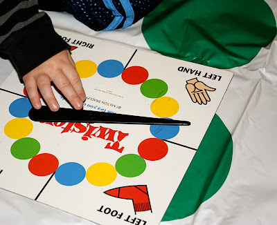 So LW, waded into GG's messy room and retrieved... TWISTER. Inside game? Check. Learning game? Check. Does it get any better than this people? Why didn't I think of this sooner?